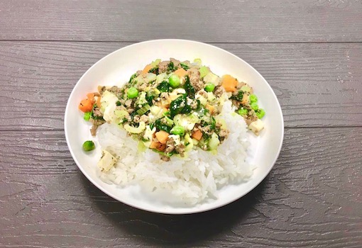 Veggie and tofu stirfry over rice